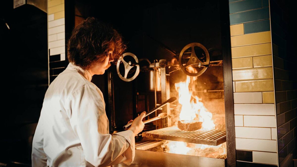 Owner and chef Kyle Quinn peeks out of the kitchen to joke with a... News Photo - Getty Images