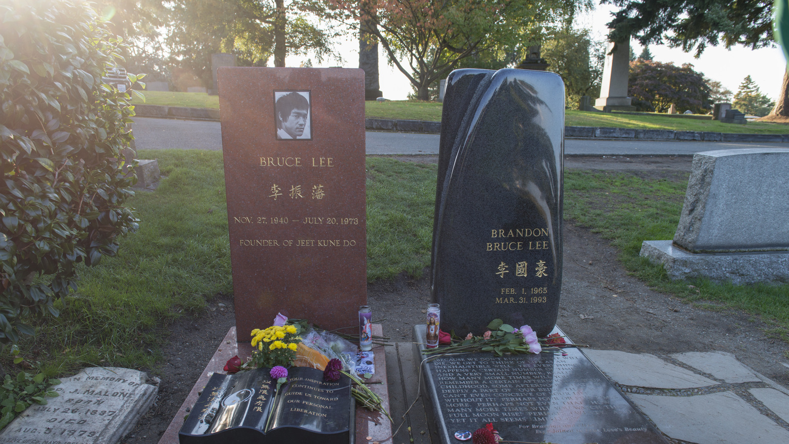 The side-by-side graves of Bruce Lee and his son Brandon Lee ...