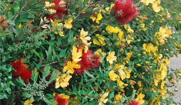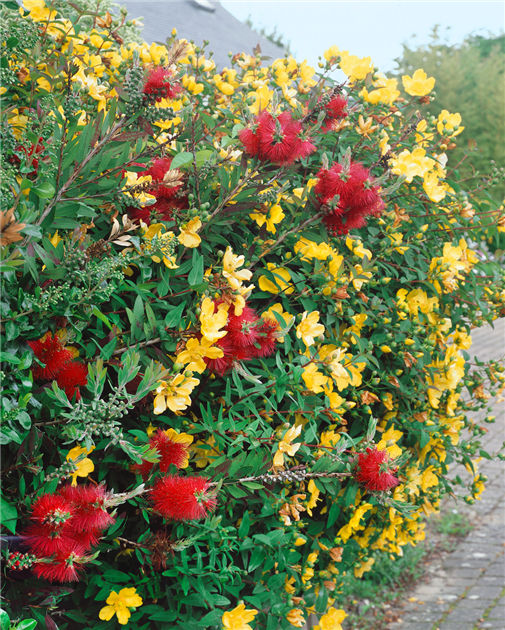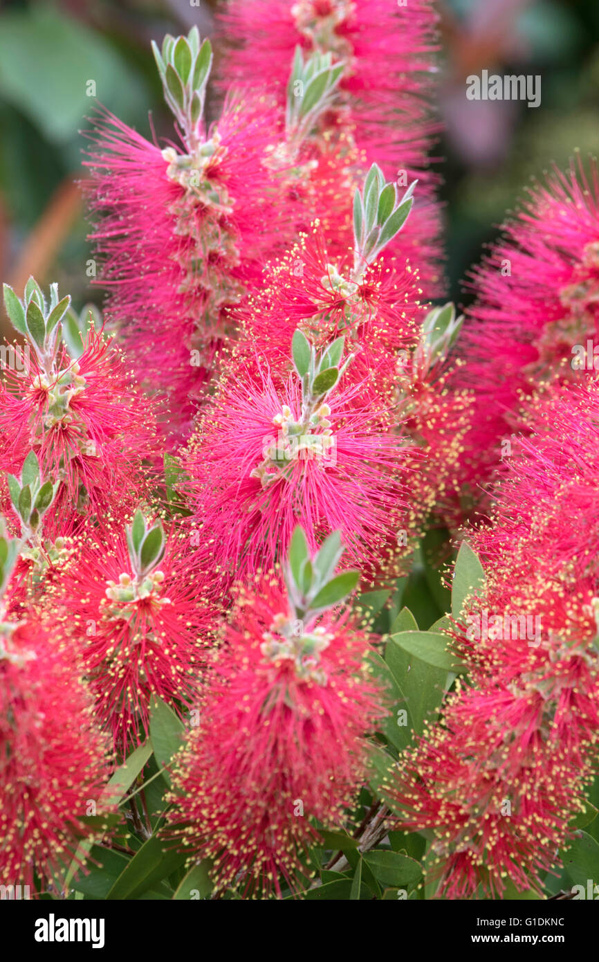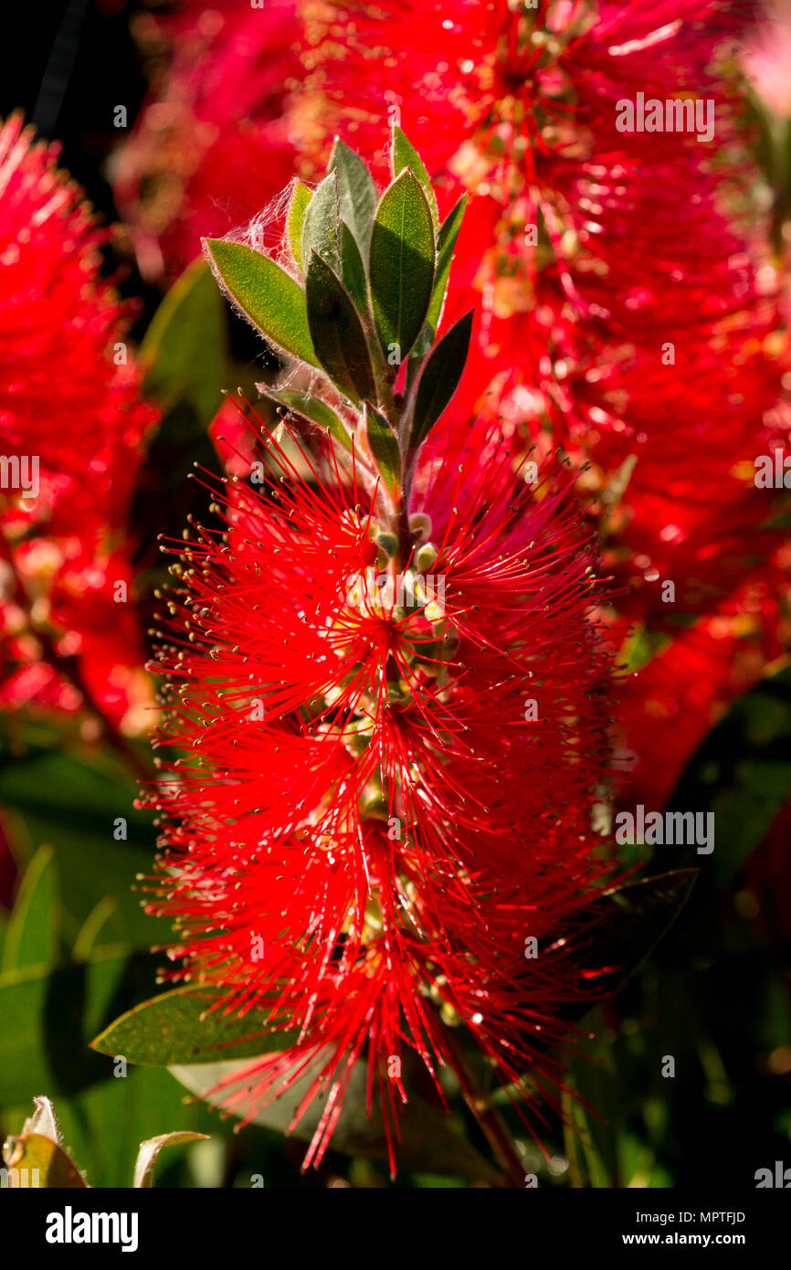Callistemon Citrinus Kleiner John, Kleiner Zwerg-Flaschenbürste, Niedrigwüchsiger Strauch Mit Kurzen Grün-grünen Blättern Und Kurzen Aufrechten Stacheln Aus Roten Blüten, Beliebte Heckenpflanze. Lizenzfreie Fotos, Bilder und Stock Fotografie. Image ...