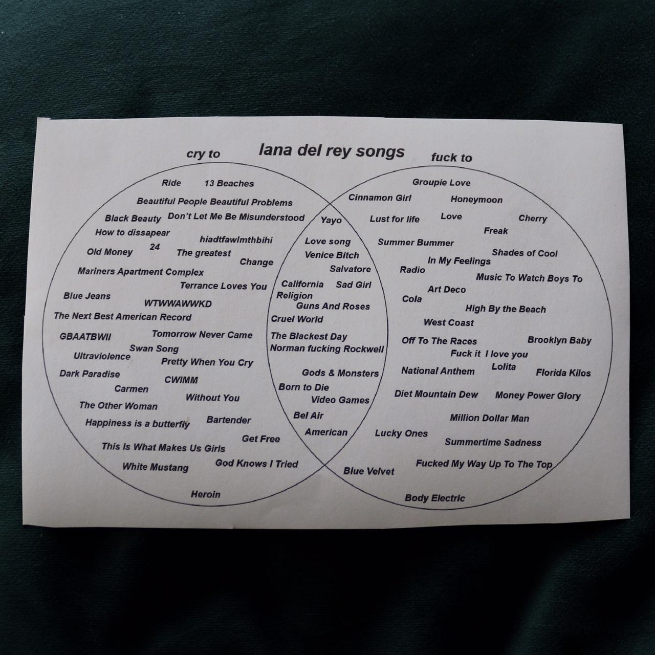 Lana del rey songs venn diagram sticker white or... - Depop