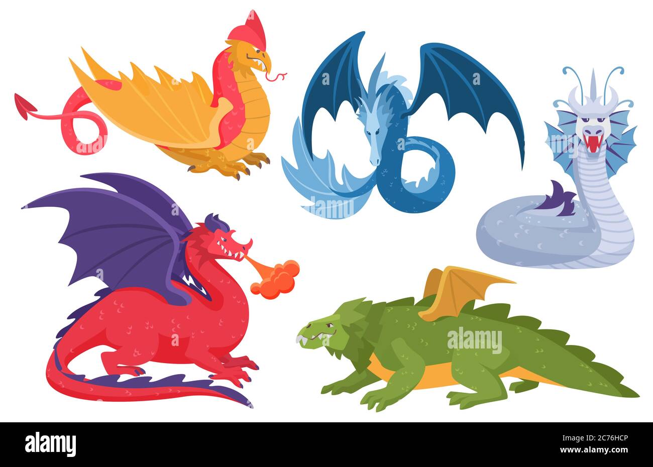 Drachen Vektor Illustration Set. Cartoon Asian bunte Märchen ...