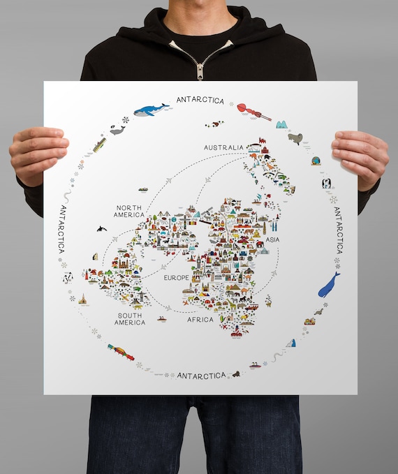 Illustrierte Flache Erde Karte - Cartoon Karte mit ...