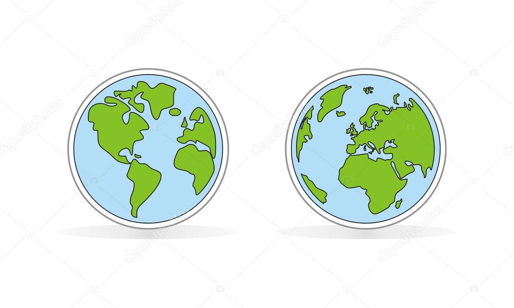 Handgezeichnete Vektordarstellung des Planeten Erde mit beiden ...