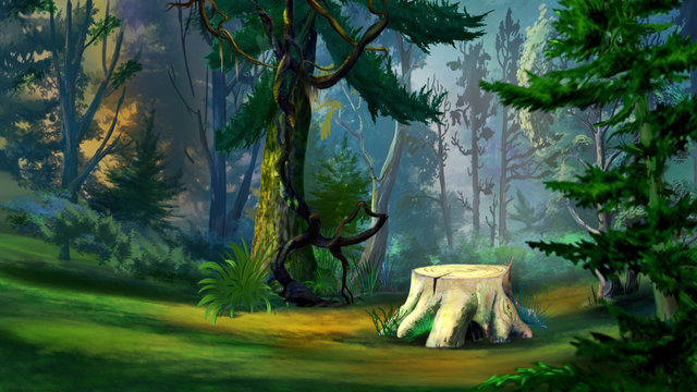 Dunkler Wald mit Baumstumpf 296536 Vektor Kunst bei Vecteezy