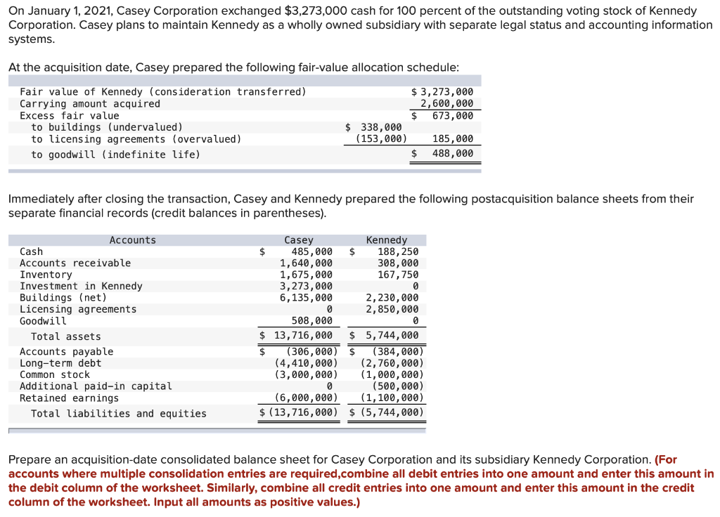 Solved On January 1, 2021. Casey Corporation exchanged | Chegg.com