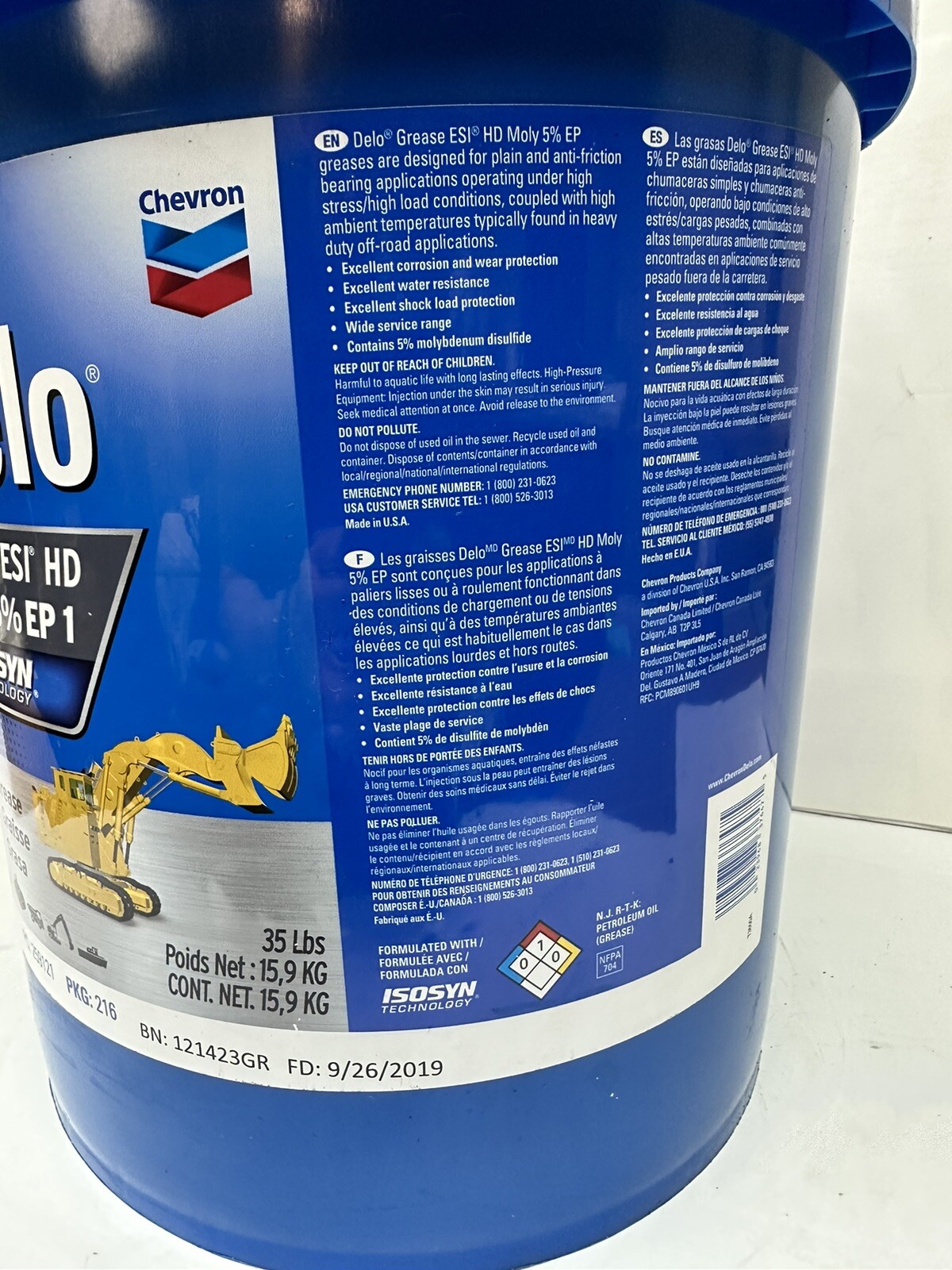 Chevron Delo Grease ESI HD Moly 5%, EP1, 35 lb pail | eBay