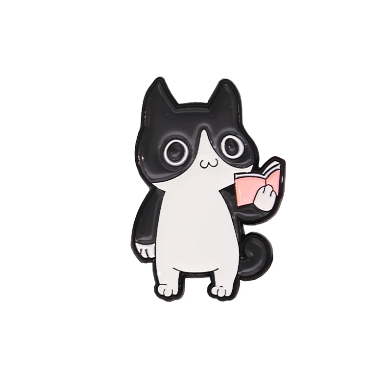 Süße, wie ein engel Katze Emaille Pin Umarmt Paar Skeleton Knochen Schwarz Weiß Katze Tier Broschen Revers Abzeichen Schmuck Zubehör