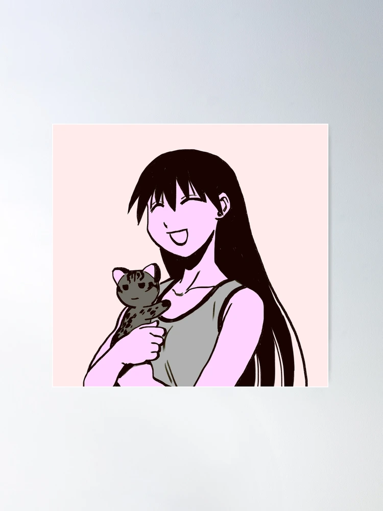 Poster for Sale mit "Ich zeichne ein fröhliches Sakaki in rosa Pastelltönen, das die Iriomote-Katze Maya / Azumanga Daioh Manga umarmt" von RansRoom | Redbubble
