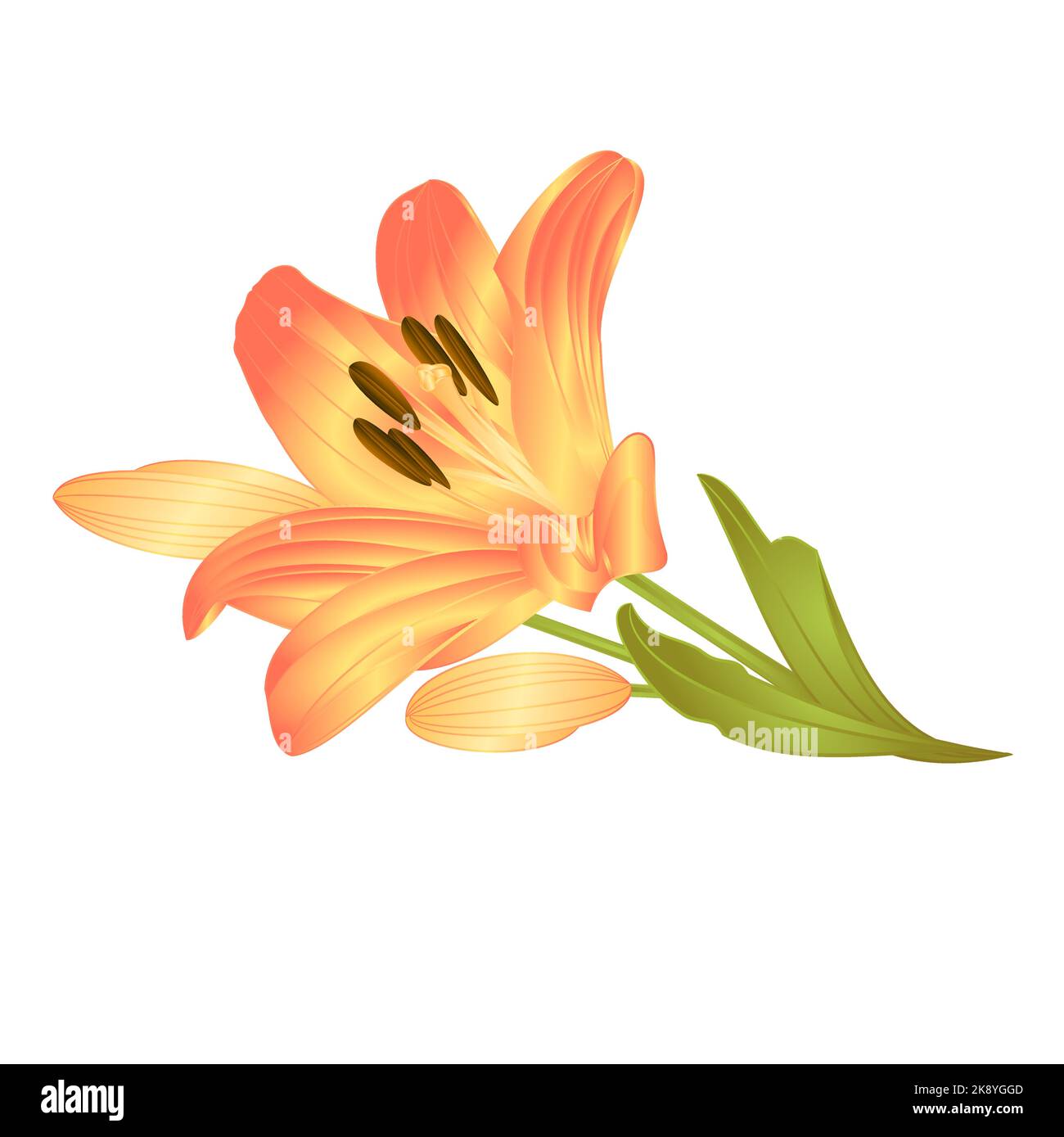 Gelbe Lilie eine gelbe Blume mit Blättern und Knospen Vektor ...