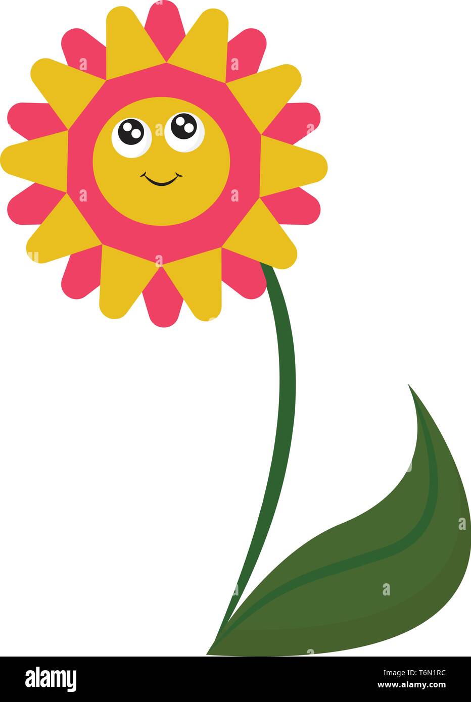 Clipart eines roten und gelben Blume mit zwei großen, runden Augen ...
