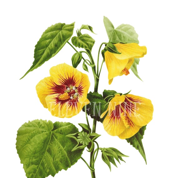 Gelbe Blumen Clipart, gelbe Blume digitaler Download, Meerinsel Baumwolle, Vintage botanischen Druck Illustration, gelbe Blume PNG JPG