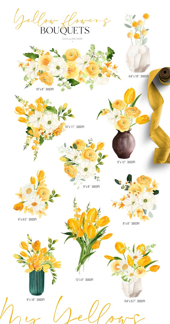 55 gelbe Blumen PNG, Aquarell Blume Clipart, gelbe Blumen Bundle ...