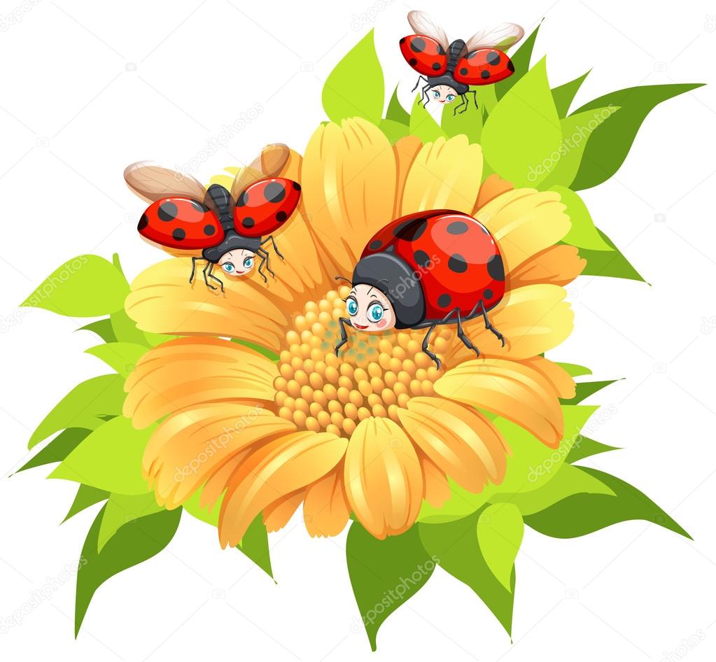 Marienkäfer fliegen um gelbe Blume Stock-Vektorbild von ...
