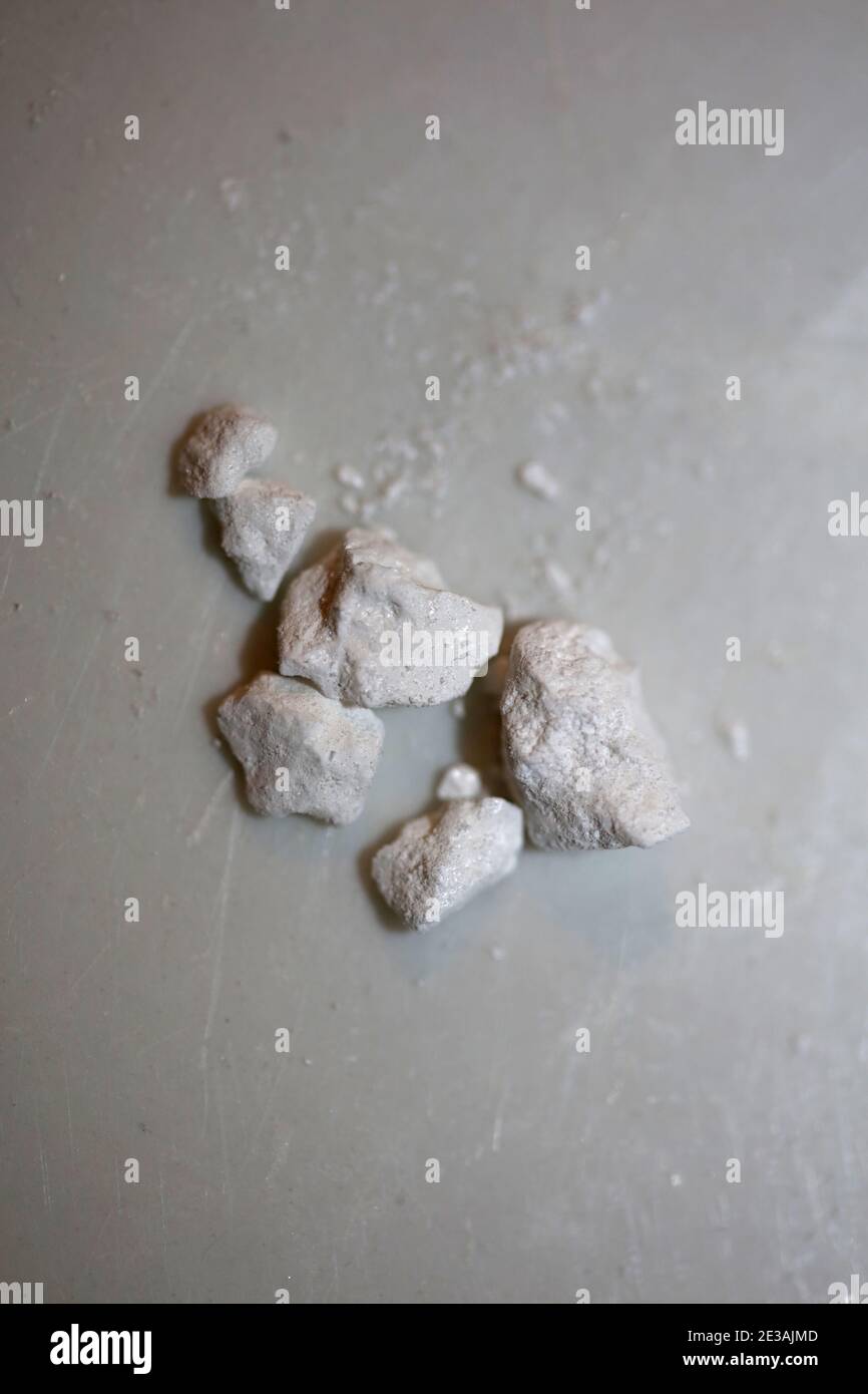 Rocas de droga de cocaína en fondo blanco de cerca moderno impresión de alta calidad Fotografía de stock - Alamy