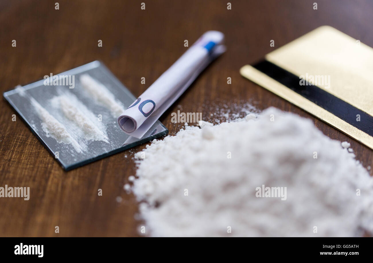 Cerca de la cocaína crack, dosis de droga y dinero Fotografía de stock - Alamy