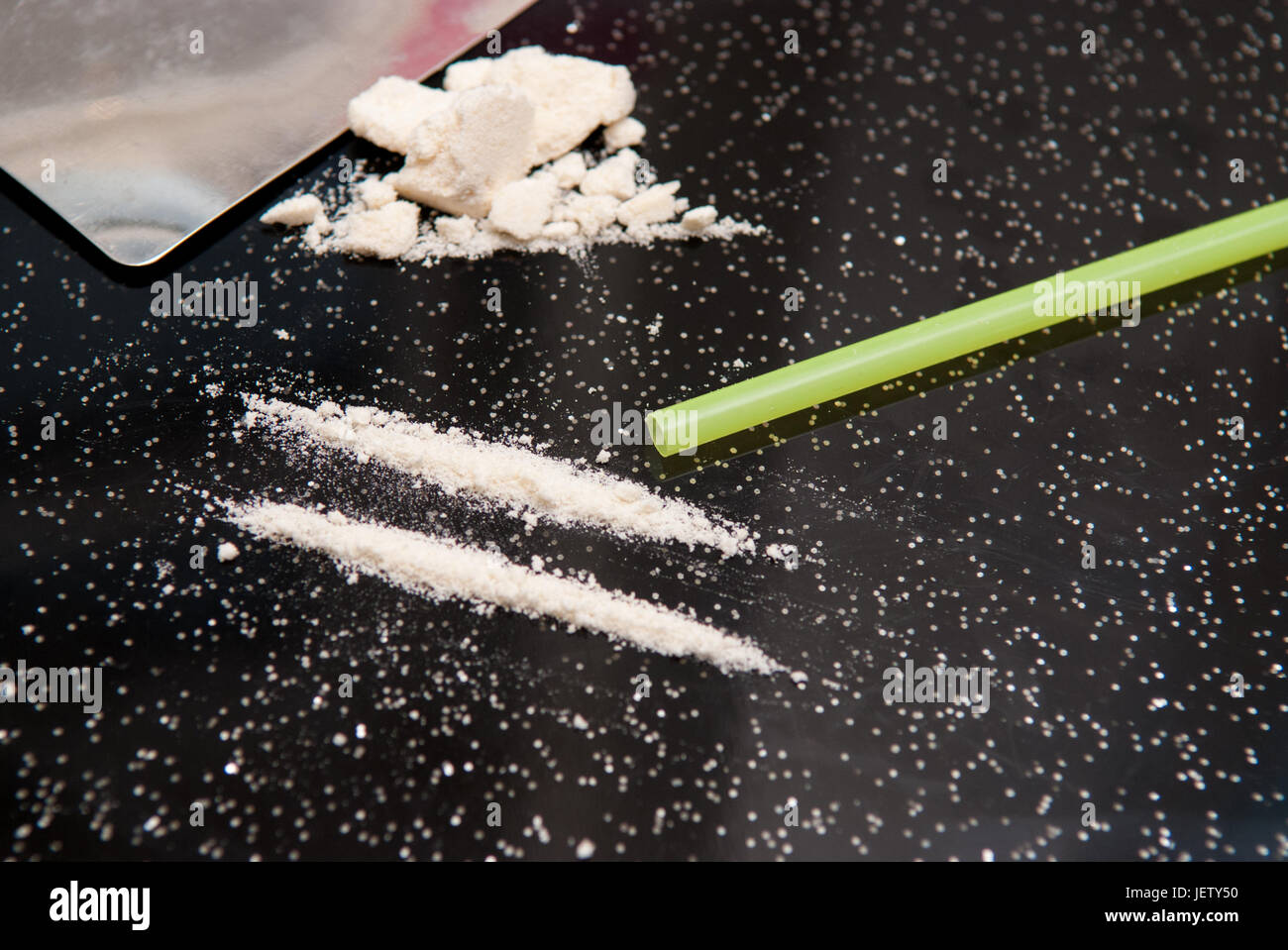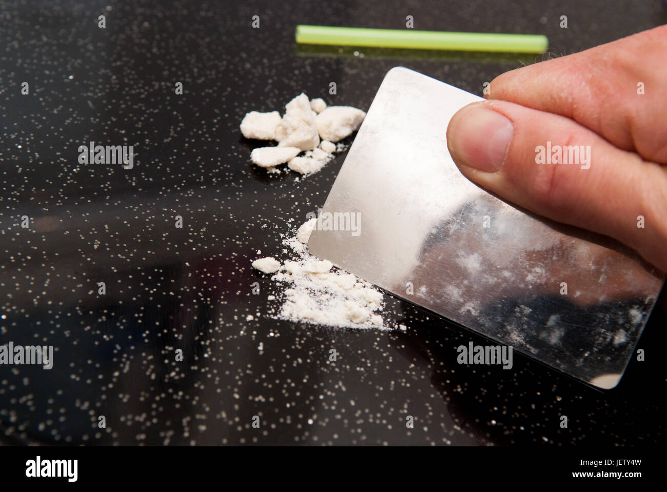 L'abuso di droga, cocaina tritato e nelle linee da adottare Foto stock - Alamy