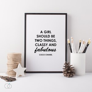 Coco Chanel print Chanel printable art Chanel quotes Chanel quote Chanel prints A Girl Should Be Two Things Classy a… | Chanel wall art, Chanel print, Chanel poster