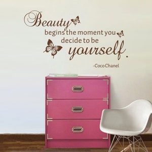 Amazon.de: Nvhai Inspirierende Wandkunst Coco Chanel Zitat ''Beauty Begins the Moment You Decide To Be Yourself'', Leinwandgemälde für Zuhause, Wohnzimmer, Wanddekoration, gerahmtes Kunstwerk (30,5 x 38,1 cm)