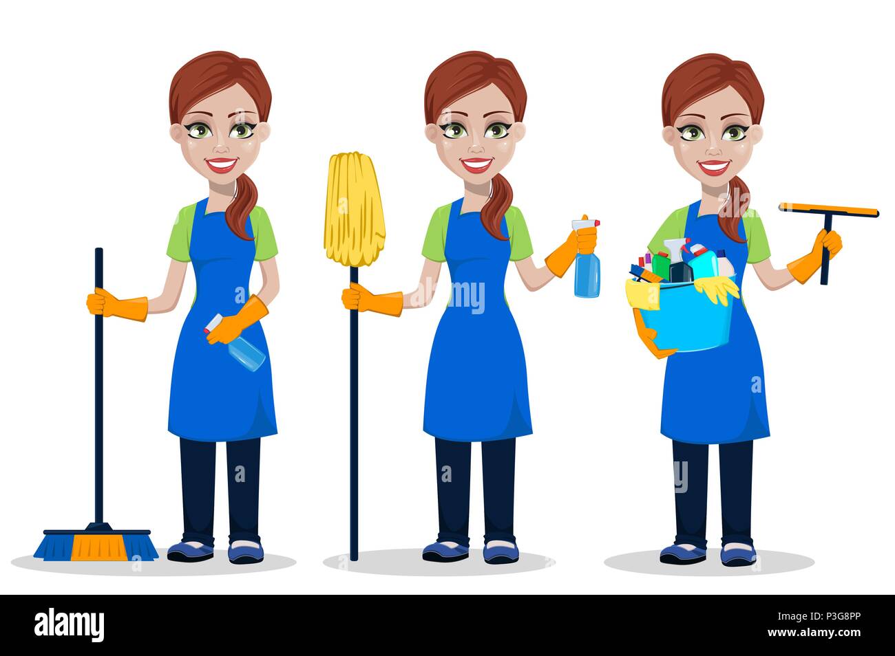 Cleaning Company Staff In Uniform, Set Of Three Woman Cartoon ...