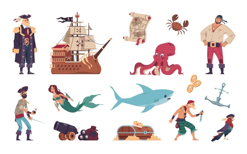 Cute pirate ship crew cartoon character set Stock Vector Image ...