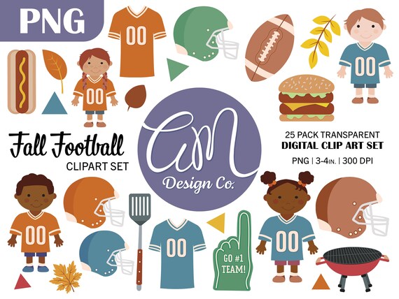 Football Clipart Set, Sports Team Clipart, Digital Stickers, Commercial Use, Football Player, Helmets, Tailgate, Fall, Football Mom, PNG