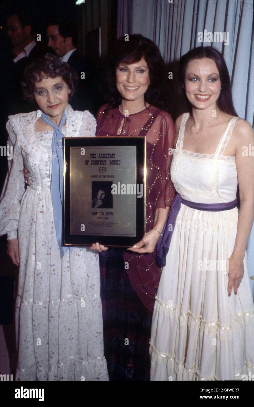FILE PHOTO** Loretta Lynn Has Passed Away. Crystal Gayle with Loretta Lynn and mother, Clara Butcher at the 15th annual "Academy of Country Music Awards" ceremonies at Knott's Berry Farm May 1,