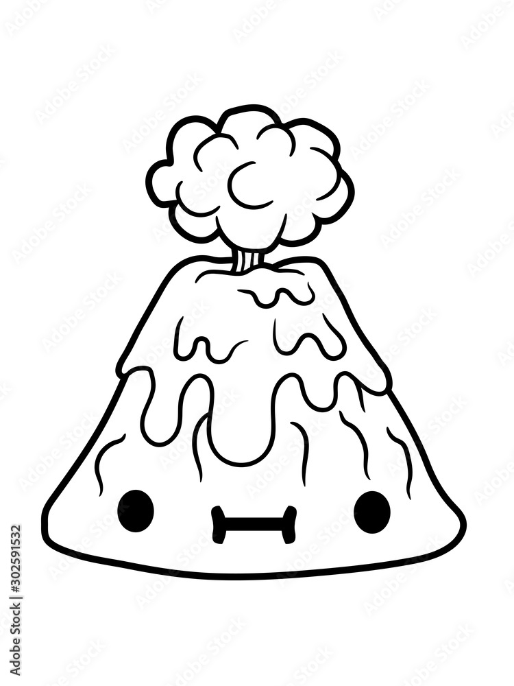 Illustrazione Stock clipart kleiner süßer vulkan mit gesicht ausbruch asche magma lava eruption gas dampf explosion wolke berg hügel katastrophe gefährlich natur | Adobe Stock