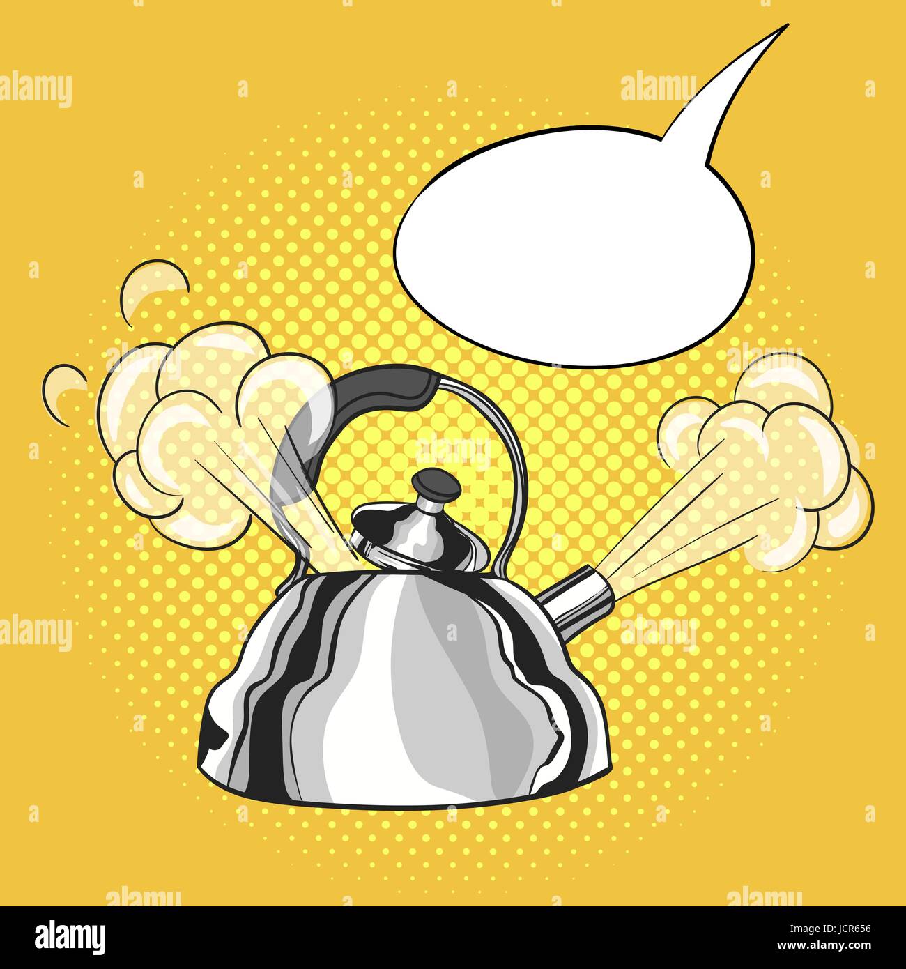 Vektor handgezeichneten Pop-Art Abbildung des Kessels mit einem Dampf aus den Deckel gezogen. Leere Sprechblase. Retro-Stil. Gezeichnete Handzeichen. Abbildung Stock-Vektorgrafik - Alamy