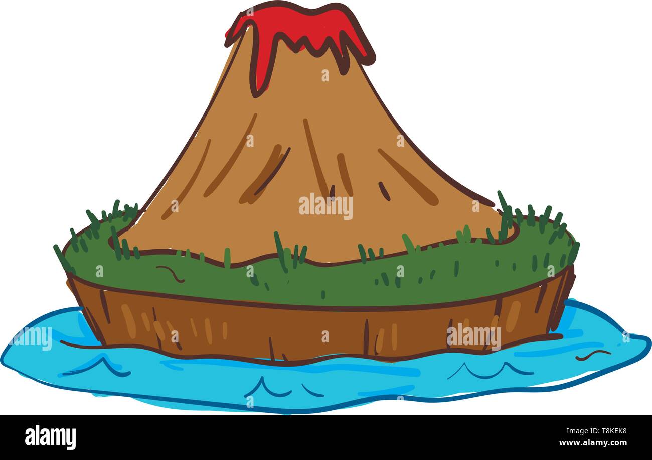 Clipart von Insel Vulkan explodiert in feurigen Wenn flüssiges Gestein, Asche und Dampf gießen Sie durch einen in der Erdkruste vent, Vector, Farbe, Zeichnung oder Illus Stock-Vektorgrafik - Alamy