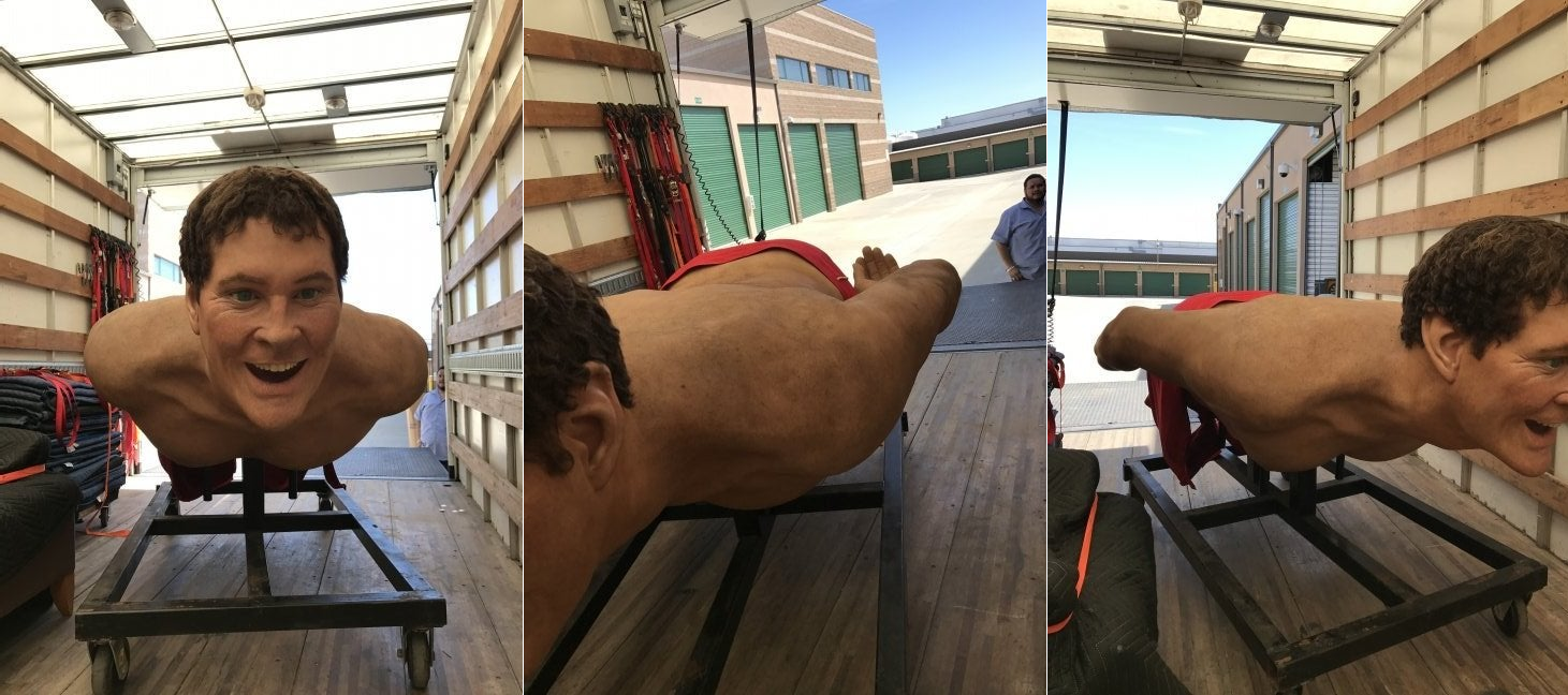 David Hasselhoff embarassing pics - A statue of Baywatch star David Hasselhoff is seen being wheeled into the Jimmy Kimmel Live! studios in Los AngelesPicture: CATHY GIBSON/PACIFICCOASTNEWS | Facebook