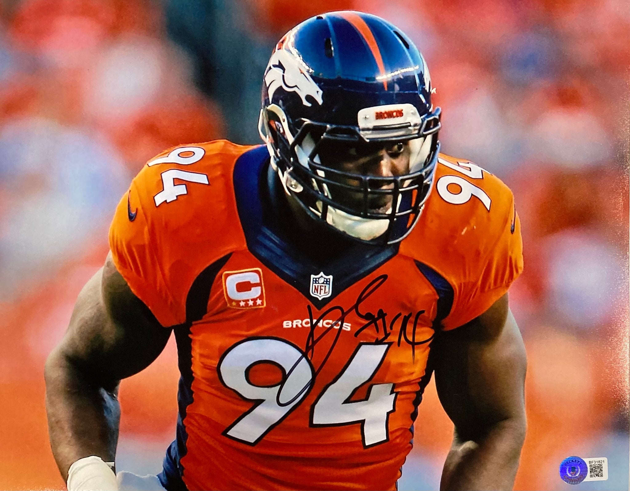 Demarcus Ware Signed 11x14 Denver Broncos Stare Photo BAS - Sports – Sports Integrity