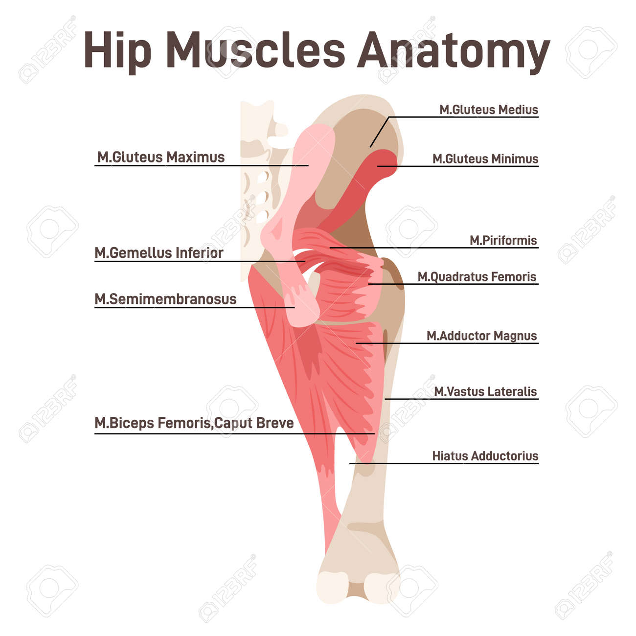 Hüftmuskeln. Didaktisches Schema Der Anatomie Des Menschlichen Muskelsystems Lizenzfrei nutzbare SVG, Vektorgrafiken, Clip Arts, Illustrationen. Image 189178869.