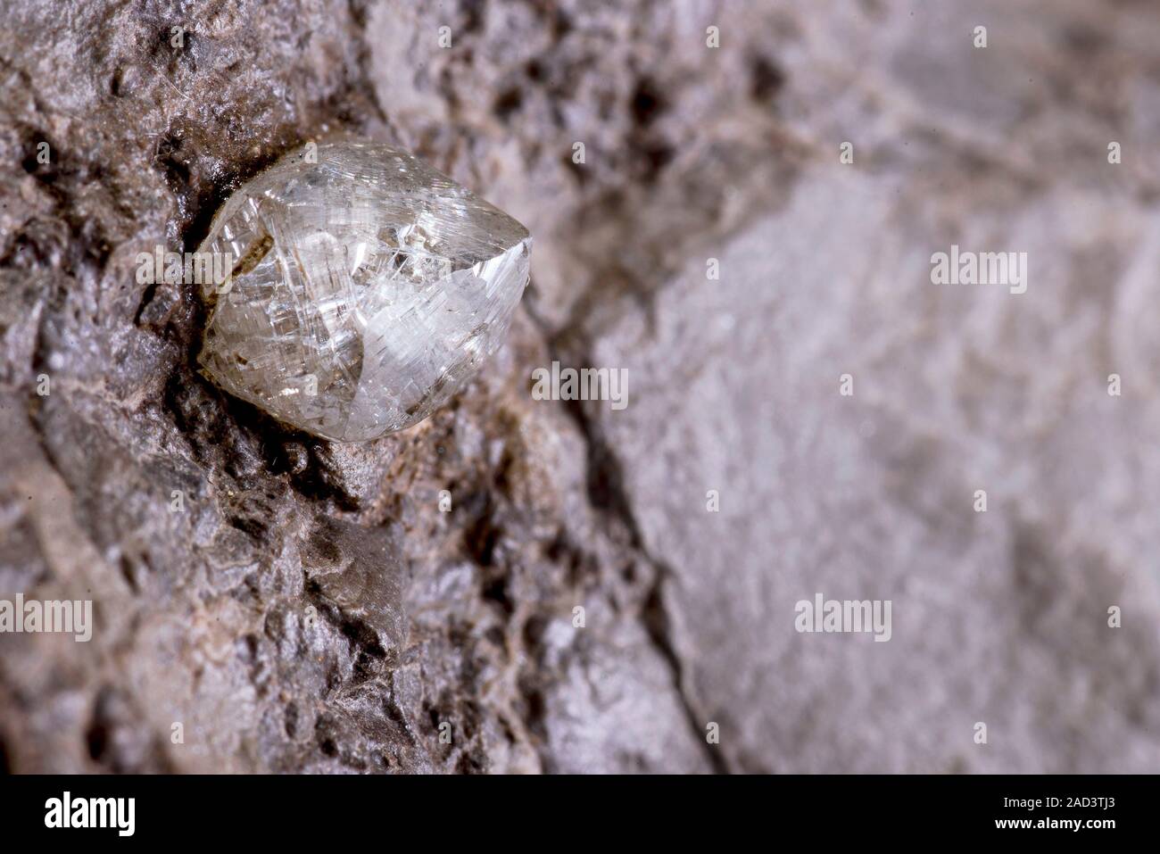 Diamant in Muttergestein. Nahaufnahme eines Diamanten (oben links) immer noch eingebettet in seinem Wirt rock. Diamond ist eine allotrope von Kohlenstoff in der kohlenstoffatome Stockfotografie - Alamy