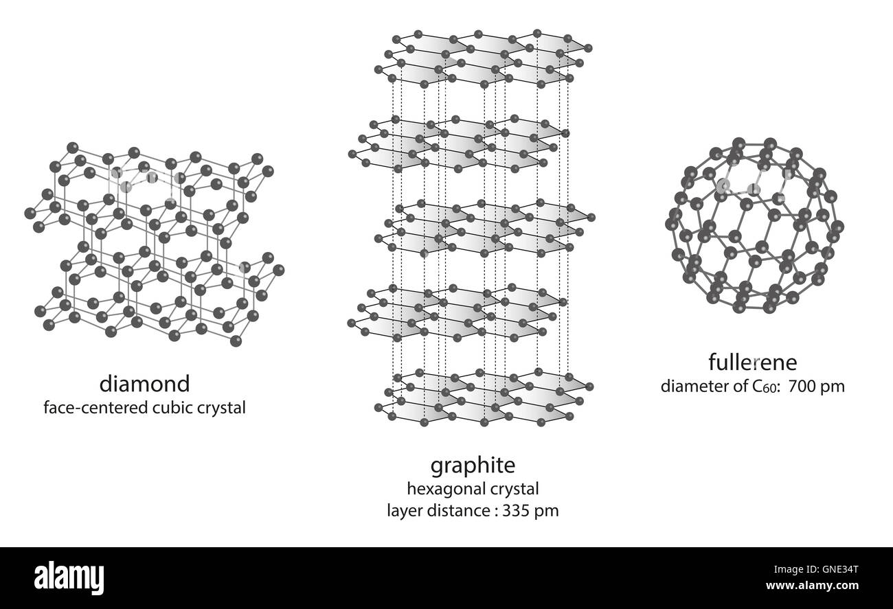 Allotrope Von Kohlenstoff-Infografik-Diagramm, Das Verschiedene Formen Zeigt, Einschließlich Diamant-Graphit-Fulleren Und Graphen Des Kohlenstoffelements Für Den Plakatvektor Für Den Naturwissenschaftlichen Chemieunterricht Lizenzfrei nutzbare SVG ...