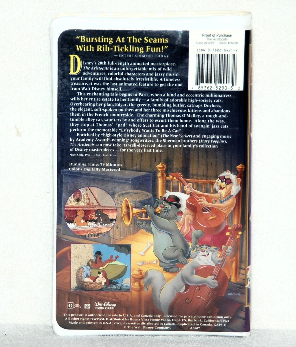 THE ARISTOCATS 1996 VHS 2529 CLAMSHELL WALT DISNEY MASTERPIECE COLLECTION RENTAL