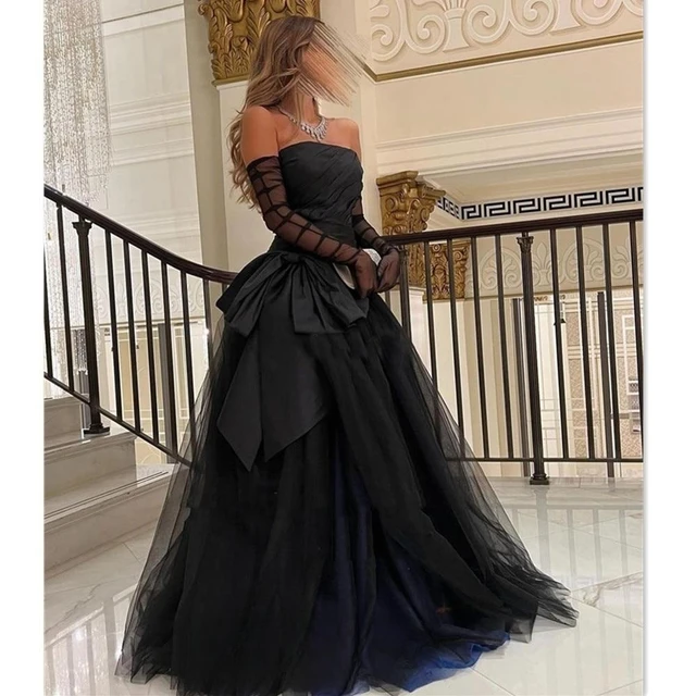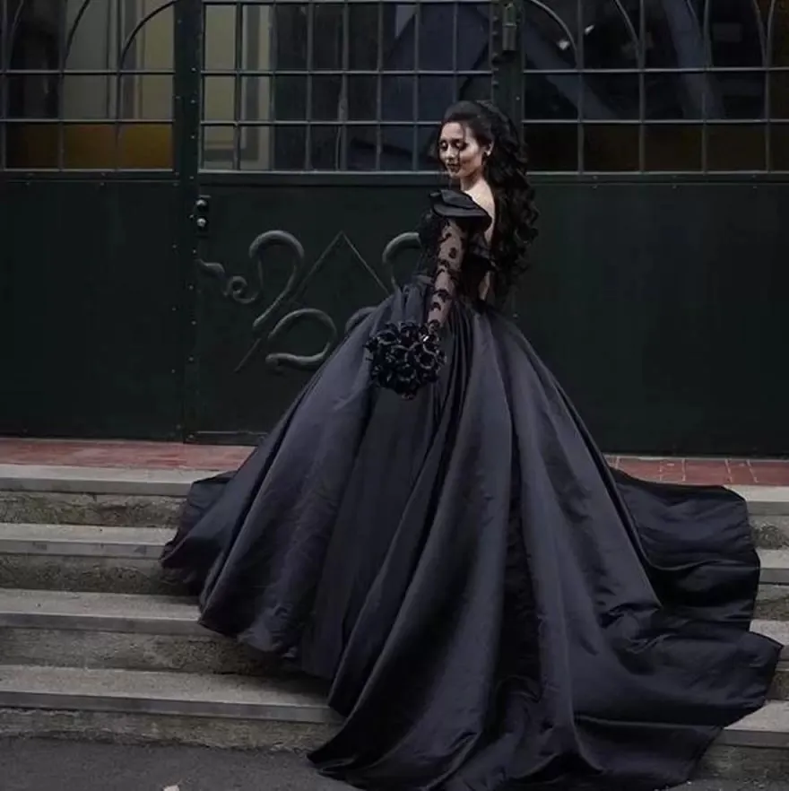 Vintage Schwarzes One Shoulder Hochzeitskleid Mit Langen Ärmeln, Gothic Braut Ballkleider, Spitzenapplikation, Perlen Satin, Country Robe De Marriage, Nach Maß 2023 Von 112,6 € | DHgate