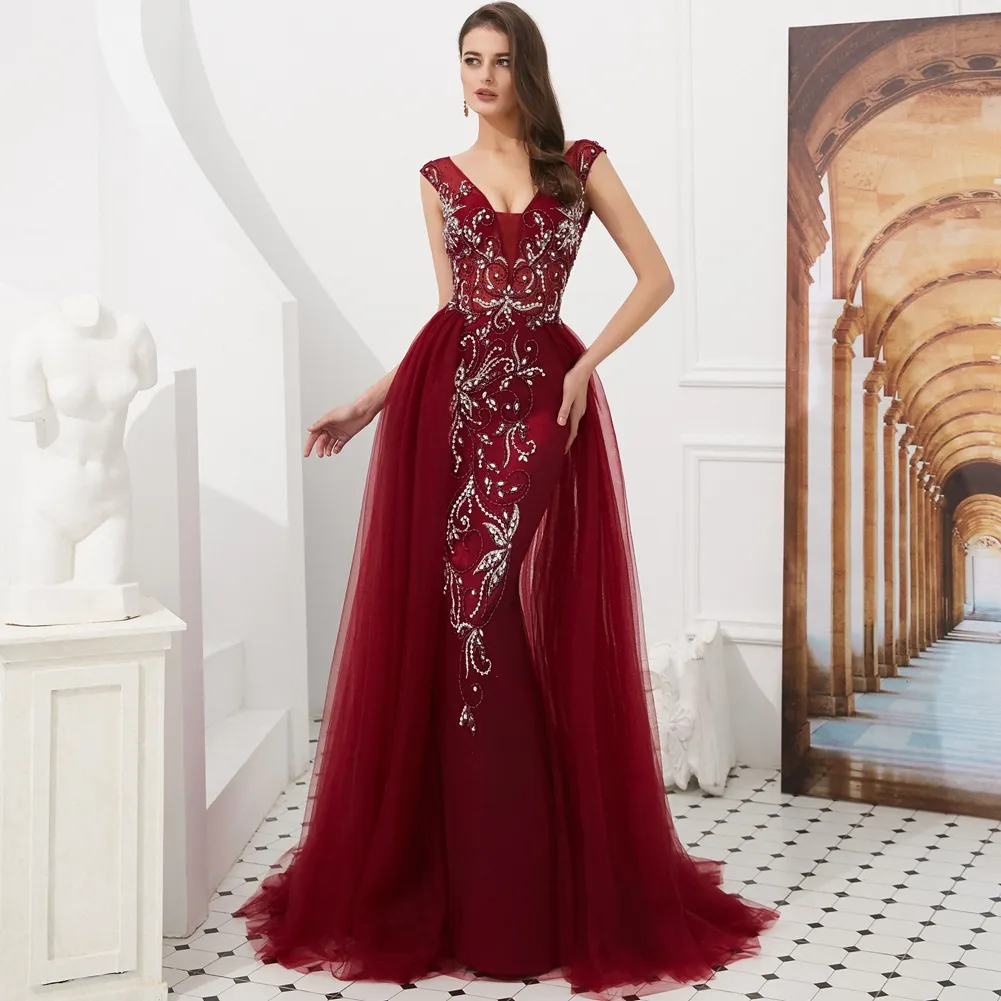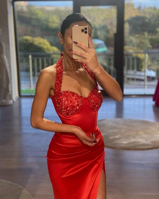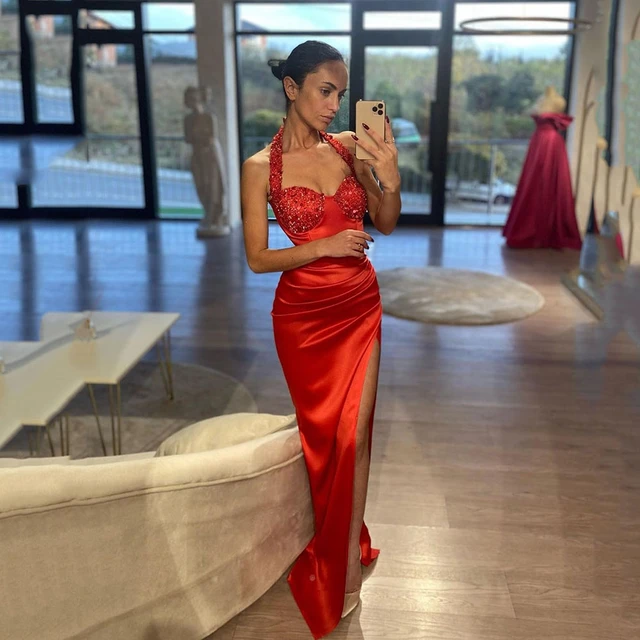 Msikoods elegante rote Ballkleider Meerjungfrau träger lose Pailletten falte sexy geteilte formelle Abendkleid boden langes Party kleid - AliExpress