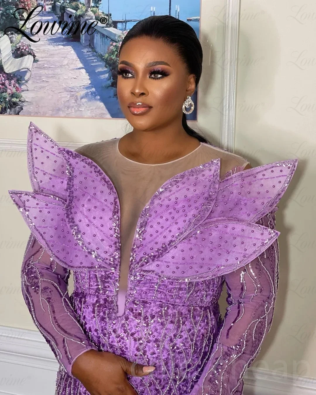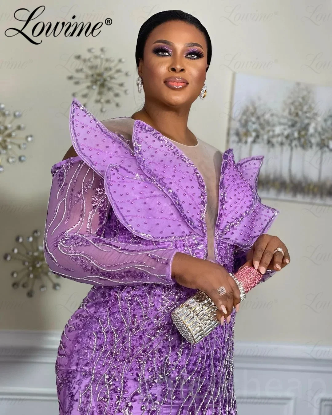 Lowime echtes Bild lila Abendkleid Arabisch Dubai Vollarm Party kleider Perlen lange Ballkleider Promi Festzug Kleider