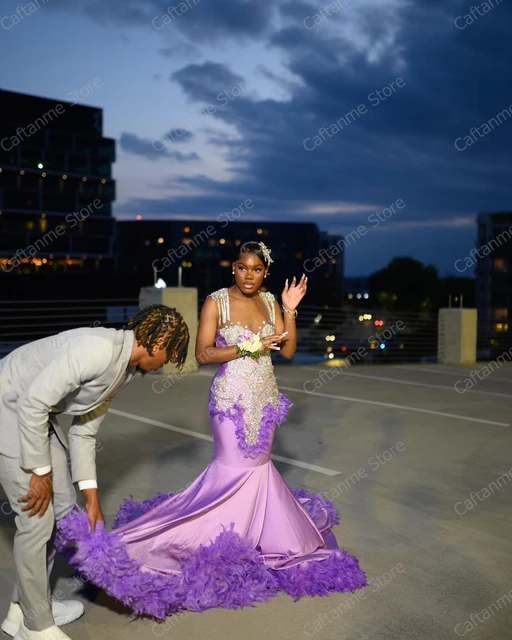 Luxus Lavendel lange funkelnde Kristall Ballkleider aso ebi sexy ärmellose Diamant schwarze Mädchen Meerjungfrau Abschluss ball Gala Party kleid 2023 - AliExpress