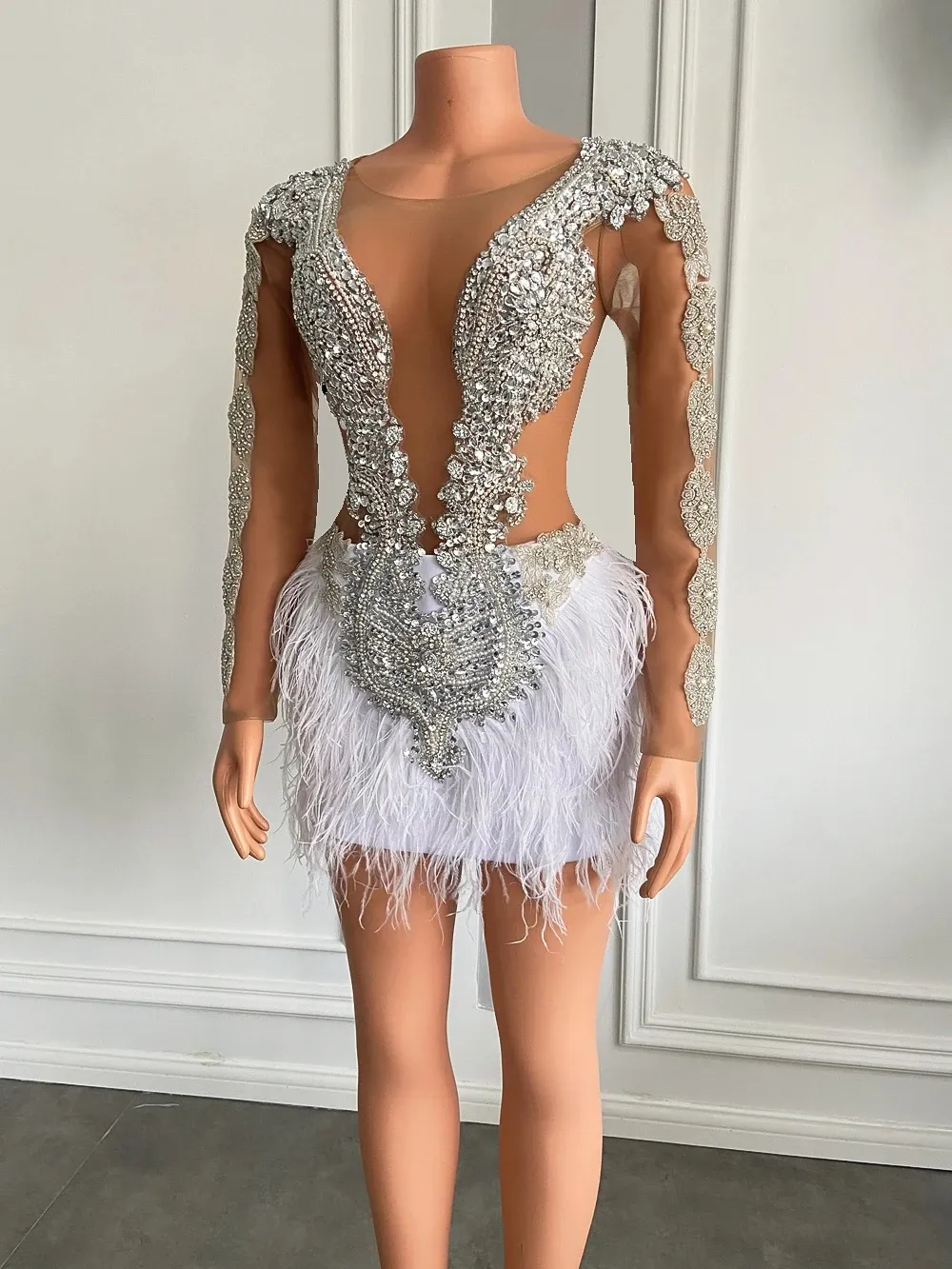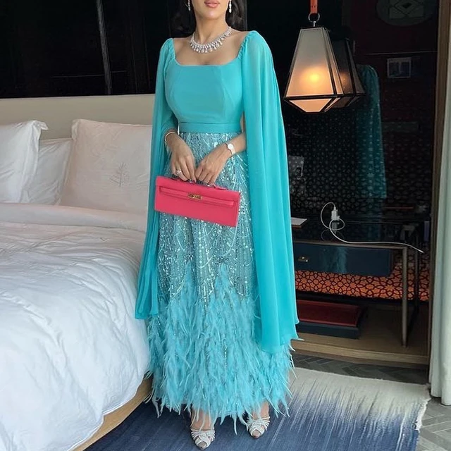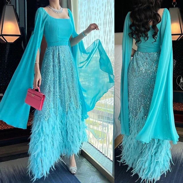 Feather Tassel Evening Dresses Luxury 2023 Women Muslim Style Party Gowns Poet Long Sleeve Chiffon Formal Prom Dress Ballkleider - AliExpress