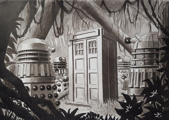 Dr Who DOCTOR Who Originale Zeichnung TARDIS, Daleks 'Return to Kembel' Original Tuschezeichnung auf Papier - Etsy.de