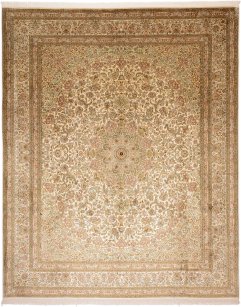 Perser Teppich Nain 9la mit Seide 310x206 cm Grün