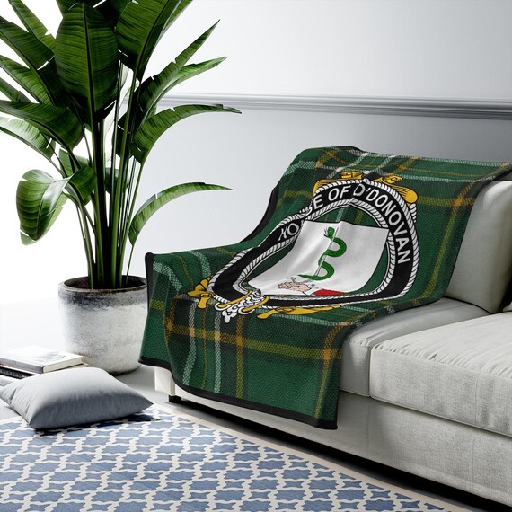 Donovan Coat Of Arms Irish Blanket, Donovan Family Irish Blanket, Irish Ancestry Gift, Irish Tartan Blanket