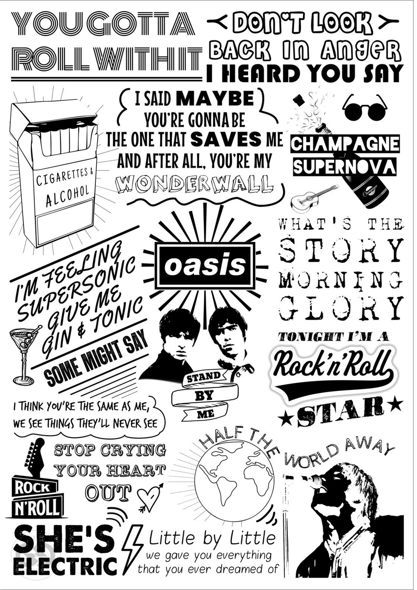 Oasis Lyric Poster Doodle Song Print Band Merch Wall Art Home Decor Gift Idea | eBay