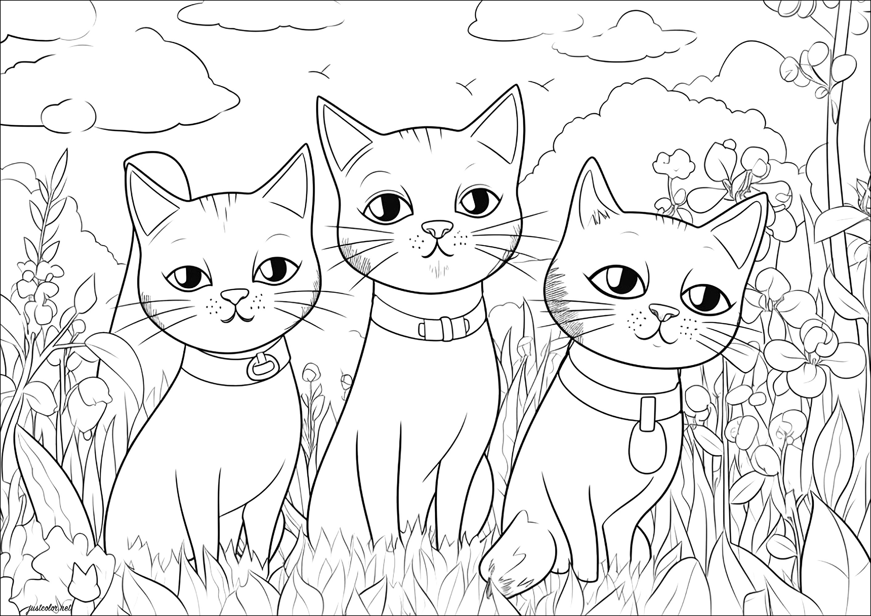 3 Katzen Ausmalbild druckbar - Etsy.de