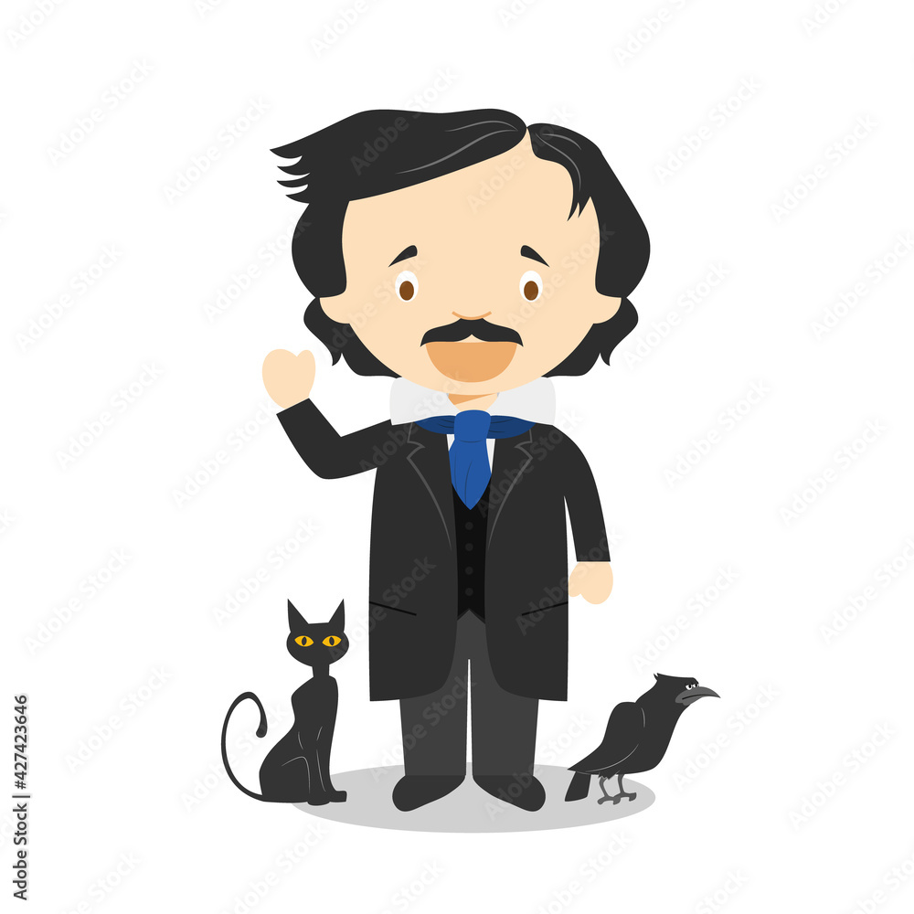Edgar Allan Poe cartoon character. Vector Illustration. Kids ...