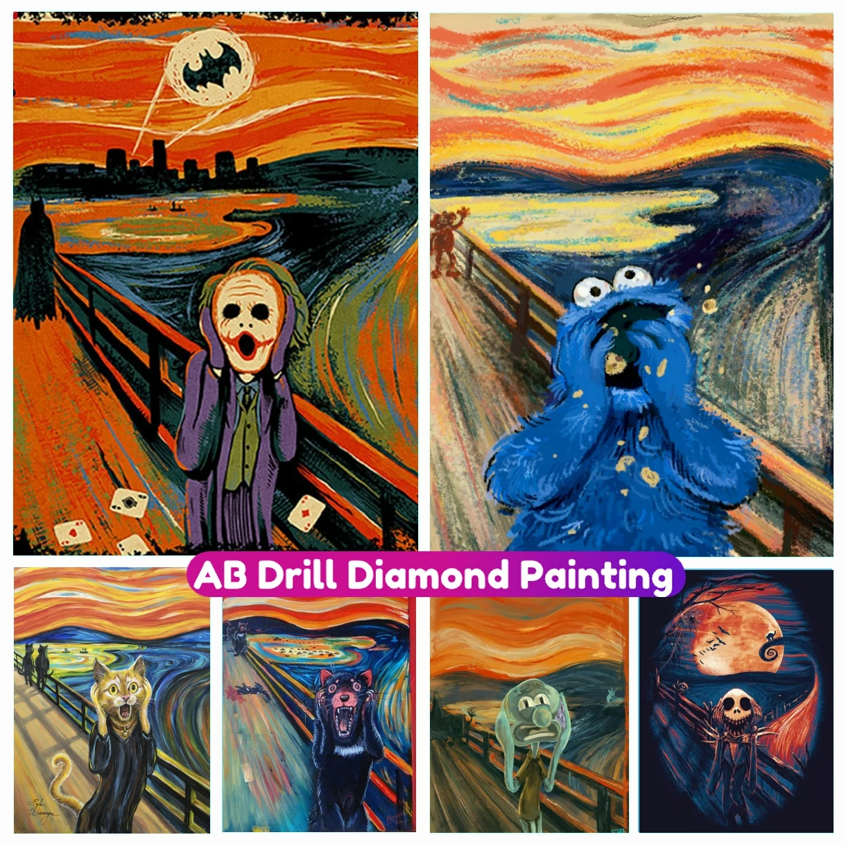 The Scream Edvard Munch Parody Pictures 5D DIY AB Diamond Paintings Cross Stitch Kit Full Drill Mosaic Embroidery Home Decor