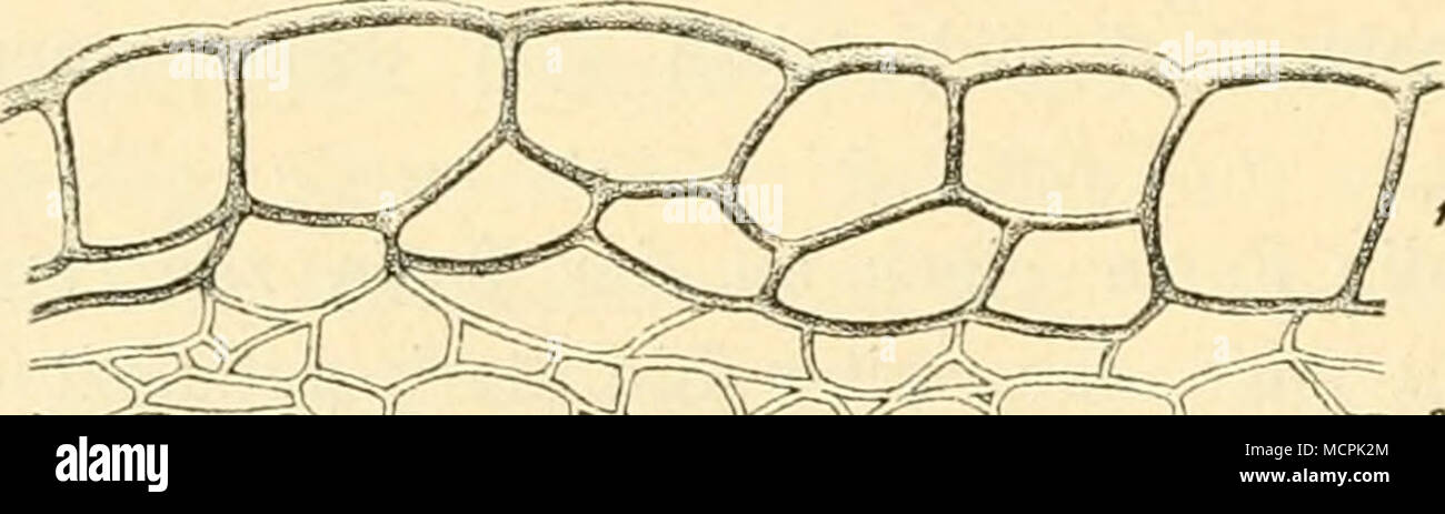 J^rXPS3^' ^c3siiaS(g>ii)öööoöDcc.. Fig. 24ü. Partie eiues Quersclinittes durcli die Samenschale der Bucliimss. 1 Epidermis, 8 SchTvammparenchym, 3 oblite- rirtes Gewebe, en Endospennrest. Verg. 400. Die Inhalts- körper sind in 1 nicht