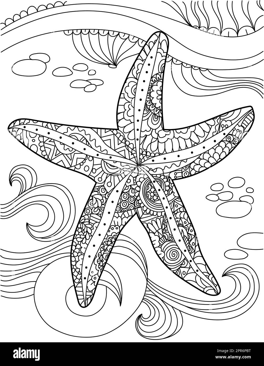 Malvorlage Mit Seestern. Malbuch Für Kinder. Lernspiel Für Kinder, Zeichnen Von Kinderaktivitäten, Bedruckbarer Bogen. Lizenzfrei nutzbare SVG, Vektorgrafiken, Clip Arts, Illustrationen. Image 98864500.