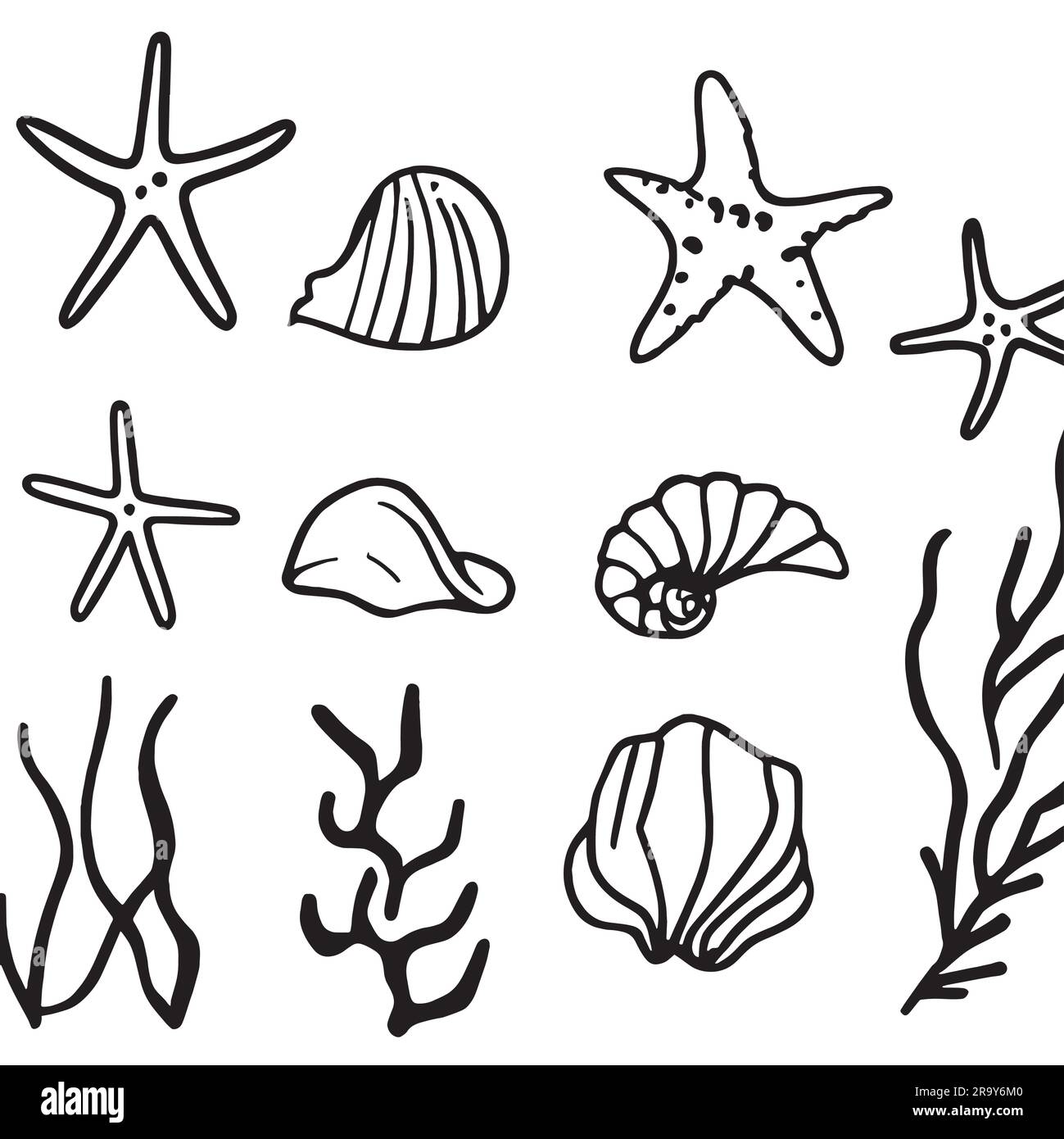 Von Hand gezeichnete Seesterne zeichnen im Kritzelstil Vektordarstellung Meerestiere Stock-Vektorgrafik - Alamy